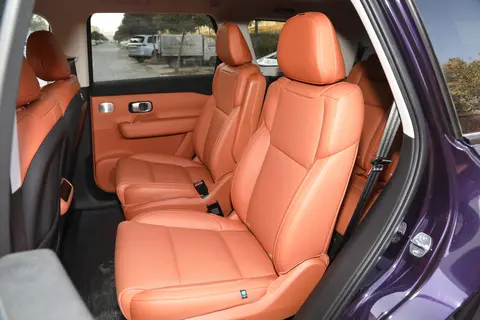 空间布局方面,零跑C16 580长续航版采用了2+2+2的三排六座布局,对于多人口家庭来说无疑是个福音。得益于SUV车型的设计,其对于空间的合理利用使得每一排座椅均得到了更为宽敞的空间。笔者身高175cm,亲身进入车内测试后发现:在前排,头部空间将近两拳,整体感觉宽敞;第二排同样不逊色,头部空间保持在一拳以上,腿部更是拥有两拳的空间,乘坐起来非常舒适;至于后排,头部空间剩下四指,腿部空间略显局促,但在家用领域内表现依旧出色。总体来说,这样的空间表现完全能满足家庭日常出行及长途旅行的需求。