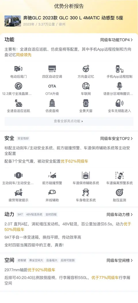 综上所述,奔驰GLC 2023款 GLC 300 L 4MATIC 动感型 5座是一款集豪华、性能和科技于一身的SUV车型。在购买二手车时,请务必进行详细的车辆检查和评估,以确保您能够获得一辆车况良好、性价比高的车辆。