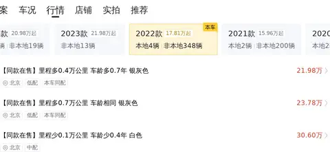 根据大数据预估显示,这辆车的市场价格在20.7万至24.27万之间,具体的价格因车辆的车龄、里程、车况等因素而有所不同。关于用车成本方面,这辆车的年均综合用车成本大概在每年1.1万元左右。这个数据基于一些假设条件,包括行驶里程、油价等因素,实际用车成本可能会根据具体情况而有所变化。