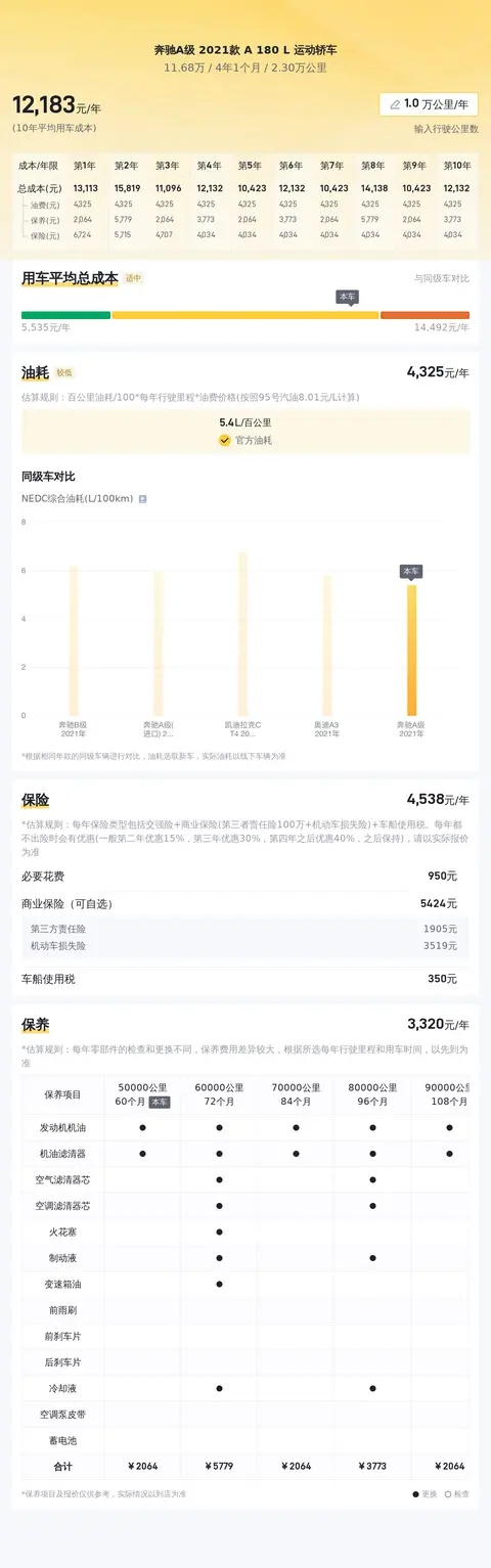 根据懂车帝平台的数据,这款奔驰A级2021款 A 180 L 运动轿车的售价在二手车市场中处于较为合理的区间。考虑到其车龄、里程数以及车况等因素,11.68 万的售价使得它成为寻求性价比与品质兼备的消费者的理想选择。在用车成本方面,这款车的年均综合用车成本大约为每年 1.2 万元左右。这一成本在同级别车型中属于合理范围,对于追求高品质生活的车主而言,这样的投入无疑是值得的。