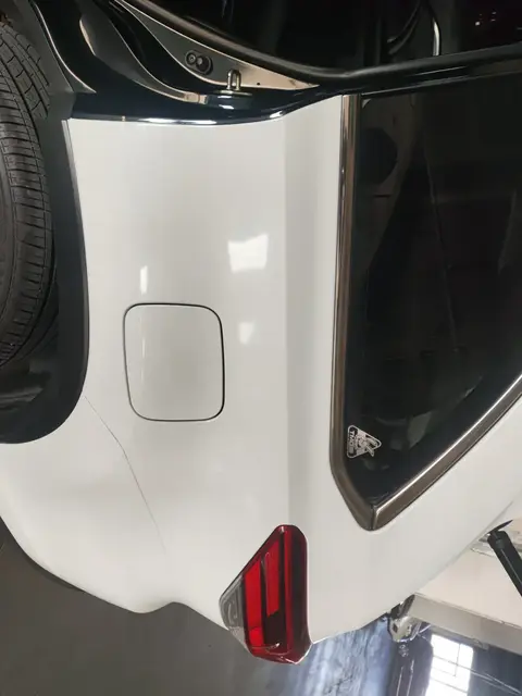 在外观检测部分,经过对汽车主要覆盖件检测,有1处瑕疵需要注意,具体为左后翼子板喷漆修复。