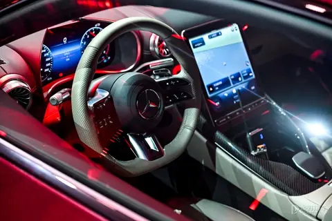 新车的底盘配置也延续了赛道基因:其标配后轮主动转向系统(双向2.5度转角),低速转弯直径缩减至11.2米,高速稳定性提升15%;AMG ACTIVE RIDE CONTROL液压主动悬挂系统取消传统防倾杆,通过液压泵实时调节车身侧倾,还可选装的碳陶刹车系统(前 420mm / 后 360mm 制动盘)。