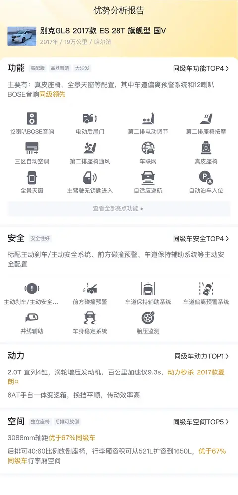 综上所述的新车含税价、用车成本、市场行情、优势分析、同款比价等数据仅供参考。在配置部分,因为二手车非标品,车辆可能会存在配置改装的情况,具体车况信息需要线下结合车辆实际情况进行综合参考。
