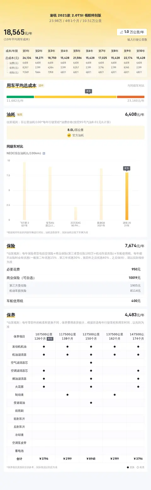 在用车成本方面,根据估算,这辆车的年均综合用车成本约19073元,这项花销是跟车主的实际用车场景和使用强度有直接变化的。好了,以上就是我们对这款车的全部介绍了。