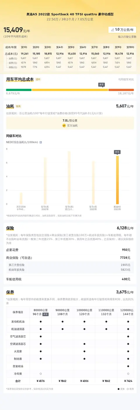 除了价格,相信车友们也很关心这辆车的用车成本。根据估算,这辆车的年均综合用车成本约为1.5万元左右。这里值得一说的是,这项花销跟车主的实际用车场景和使用强度有着直接关系,所以会有波动,这项开支具体是多少,还需要车主自己实际体验后才能得知。