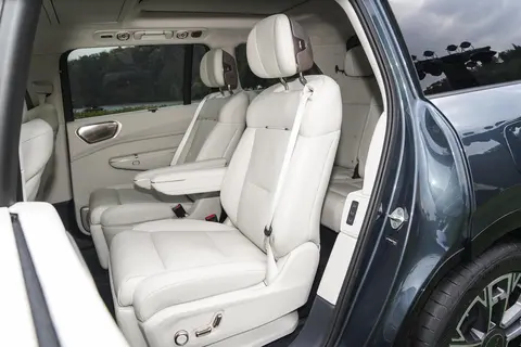 领克900的2+2+2六座布局设计合理,二排座椅可实现前后550毫米的移动范围,第三排座椅则支持前后125毫米的移动,为乘客提供了宽敞舒适的乘坐空间。配置上,新车后排配备了30英寸6K分辨率悬浮式娱乐屏、后排控制屏、车载冰箱、折叠桌板、腿托、遮阳帘、220伏电源插口等豪华配置,以及哈曼卡顿音响系统,为乘客带来了极致的娱乐体验。