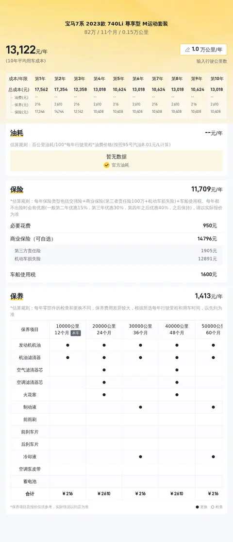 按照该车每年行驶 2 万公里计算,10 年平均用车成本约 46,568 元/年。对于一台豪华旗舰D级轿车来说,这个费用并不算高。