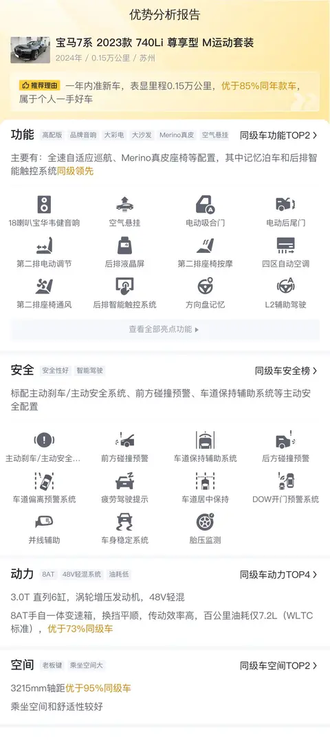 从市场行情来看,这台 2023 款 740Li 尊享型 M 运动套装的售价在二手车市场中具有一定的竞争力。考虑到其较低的行驶里程和良好的车况,这样的售价对于寻求豪华轿车的消费者来说,是一个不错的选择。需要注意的是,在购买二手车时,建议消费者亲自查看车辆实际情况,确保车辆的质量和性能符合个人需求。