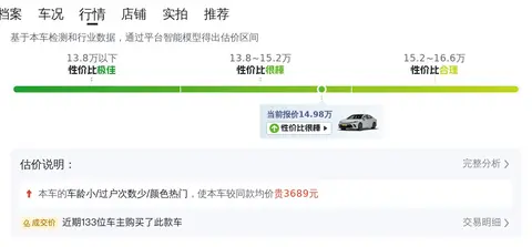 当前的市场行情显示,这款车型的二手车价格大约在14.08万-16.63万元之间。当然,市场行情价与最终成交价是有差异的,具体的售价会受到车辆状况等因素的影响。用车成本上,根据估算,这辆车的年均综合用车成本约9千元左右。这个价格是在合理范围内的,具体还需根据用车频率和环境等进行实际估算。