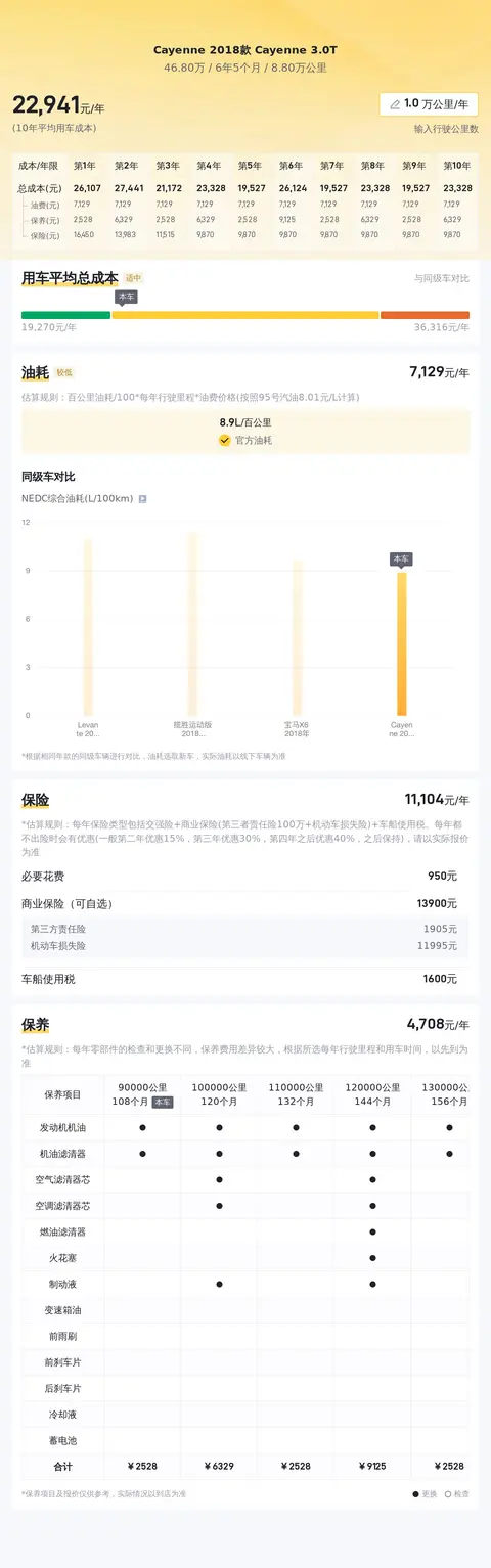 在用车成本方面,根据估算,这辆车的年均综合用车成本约为2.3万元左右。这里要说的是,这项开销跟车主的用车场景和使用强度有直接关系,所以每个人的用车成本可能会有所不同。