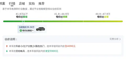 在二手车市场行情方面,该车的售价为39.5万元,在类似车型中价格处于较低的水平。根据车况等因素综合考虑,该车性价比较高。
