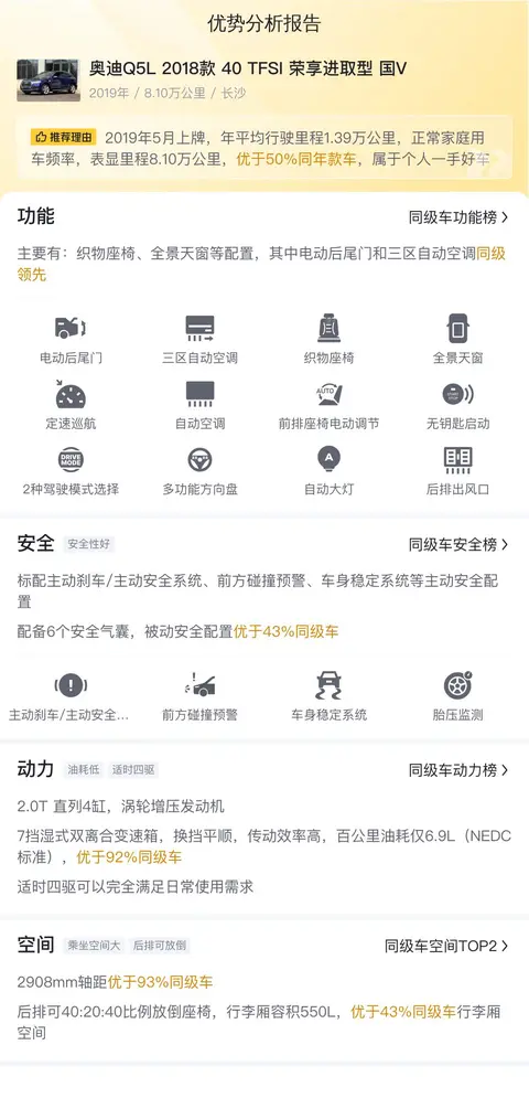 总的来说,这辆二手奥迪Q5L 2018款 40 TFSI 荣享进取型 国V经过第三方检测,车况良好,可以放心选购。