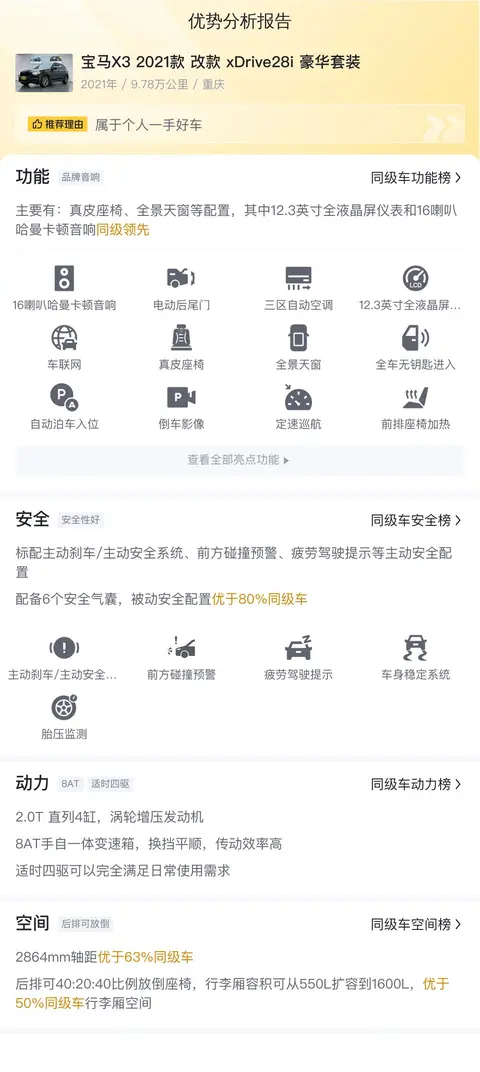 综上所述的新车含税价、用车成本、市场行情、优势分析、同款比价等数据仅供参考。在配置部分,因为二手车非标品,车辆可能会存在配置改装的情况,具体车况信息需要线下结合车辆实际情况进行综合参考。