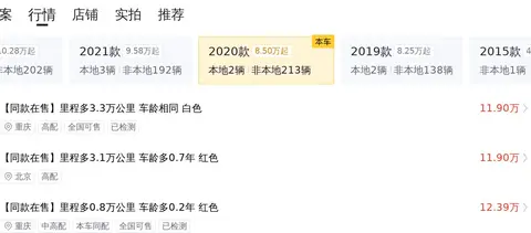 该车于2020年9月在成都注册,至今行驶了5万公里,车身白色,内饰黑色,当前车牌所在地和车源所在地均为成都,未曾有过过户记录。这辆车的新车指导价24.98万,如今二手车报价10.5万。