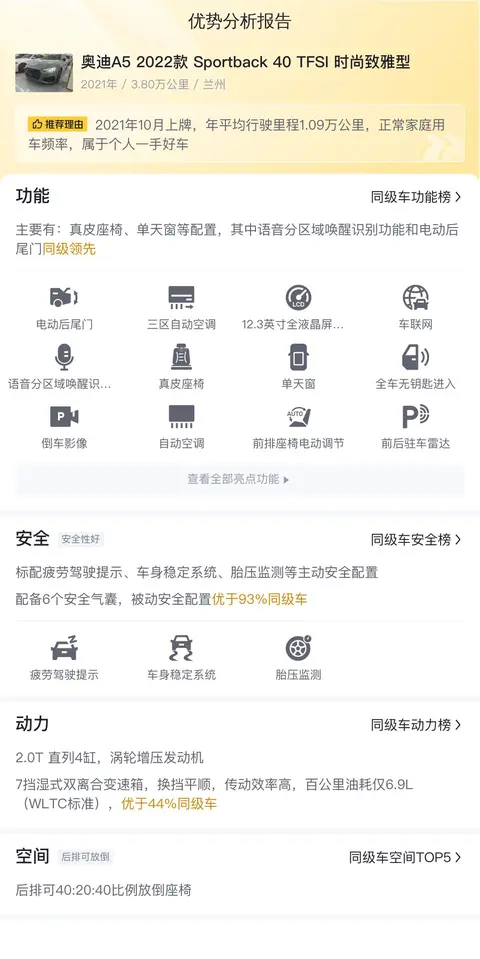 综上所述的新车含税价、用车成本、市场行情、优势分析、同款比价等数据仅供参考。在配置部分,因为二手车非标品,车辆可能会存在配置改装的情况,具体车况信息需要线下结合车辆实际情况进行综合参考。