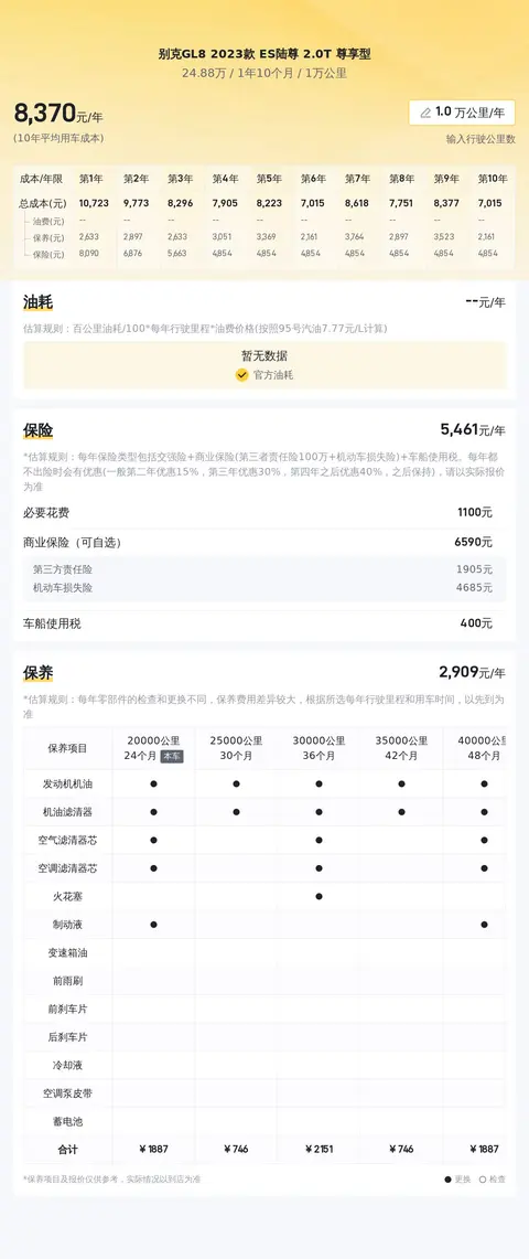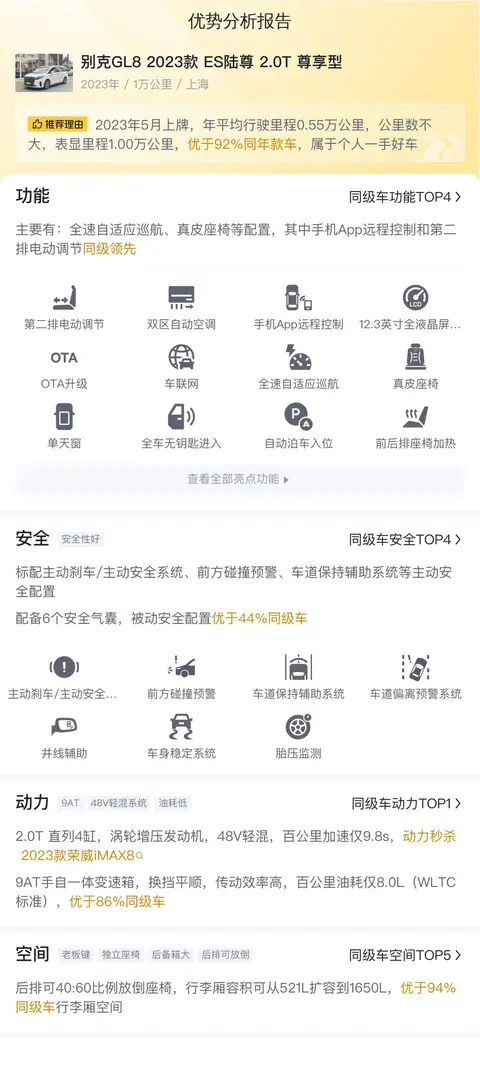 综上所述的新车含税价、用车成本、市场行情、优势分析、同款比价等数据仅供参考。在配置部分,因为二手车非标品,车辆可能会存在配置改装的情况,具体车况信息需要线下结合车辆实际情况进行综合参考。