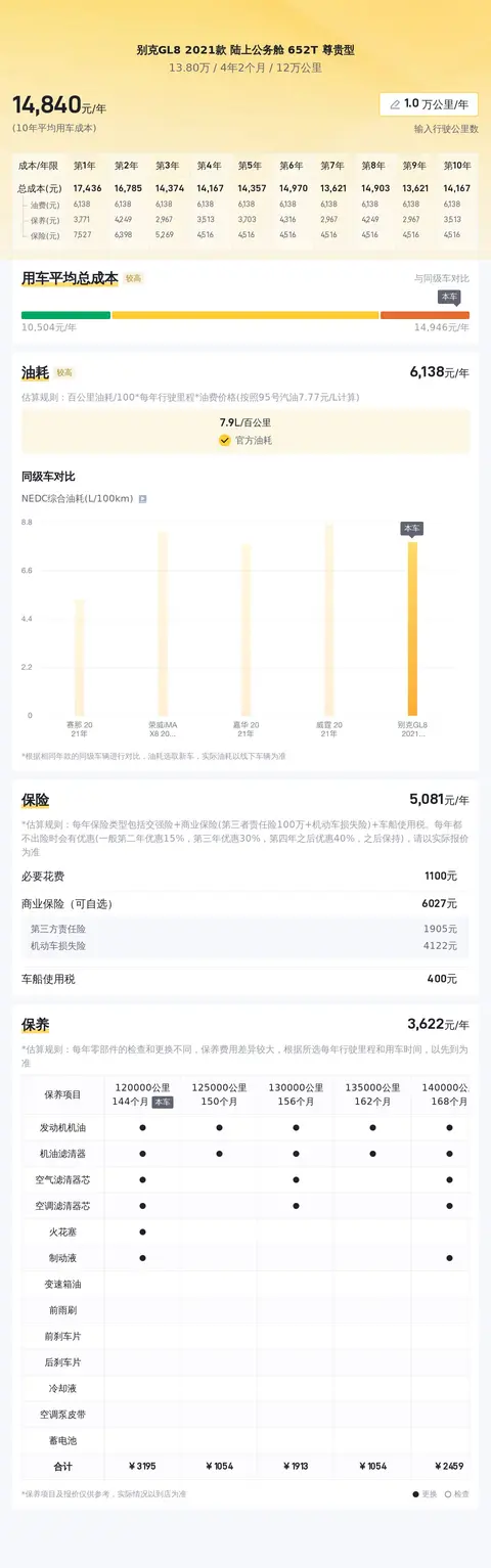 在用车成本方面,根据估算,该车的年均综合使用成本大约为1.5万元,其中包括油费、保养费、保险费等。值得注意的是,实际费用可能会根据车主的使用习惯和选择的保险产品等因素有所变化。与同级别车型相比,该车的使用成本处于相对合理的范围内。