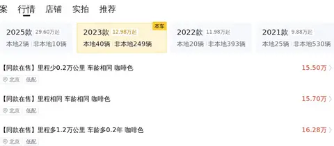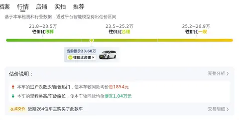 此车于2023年7月在潍坊上牌,至今行驶了6万公里,且未曾有过过户记录。新车指导价34.39万,如今二手车报价23.68万。
