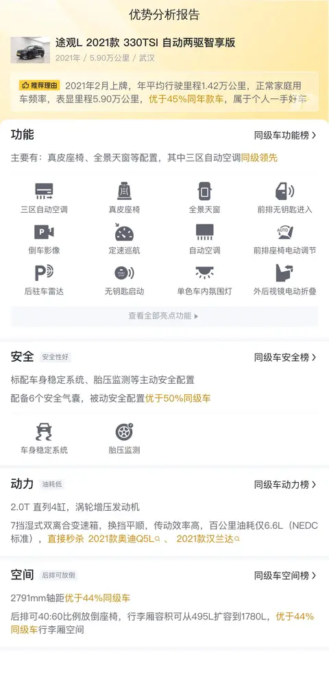具体版本:途观L 2021款 330TSI 自动两驱智享版