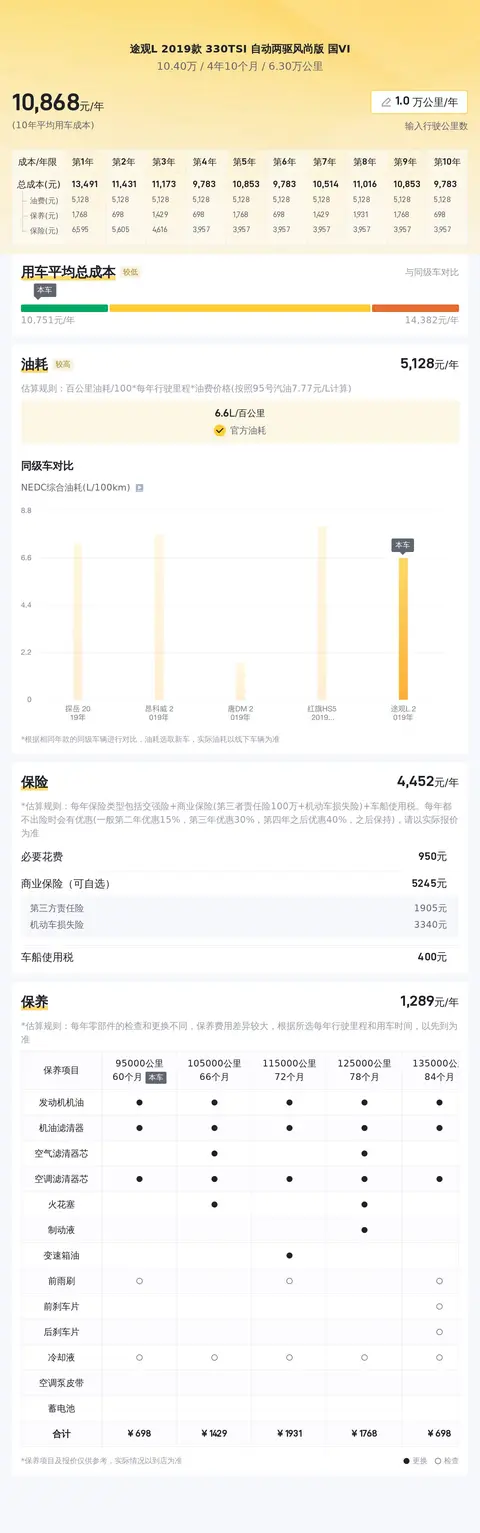 用车成本方面,根据估算,这辆车年均综合用车成本大概在每年1.1万元左右。这项花销是跟车主的实际用车场景和使用强度有直接变化的。