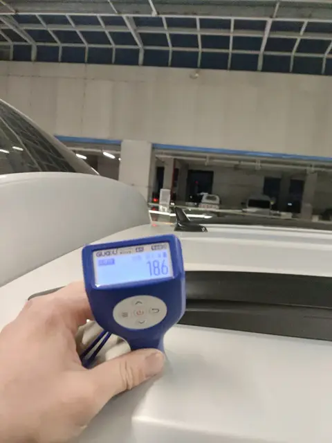 外观检测中,在右后翼子板处发现有喷漆修复的痕迹,可能是之前车主倒车的时候不小心发生了剐蹭,已经修复过了,不影响车辆的正常使用。