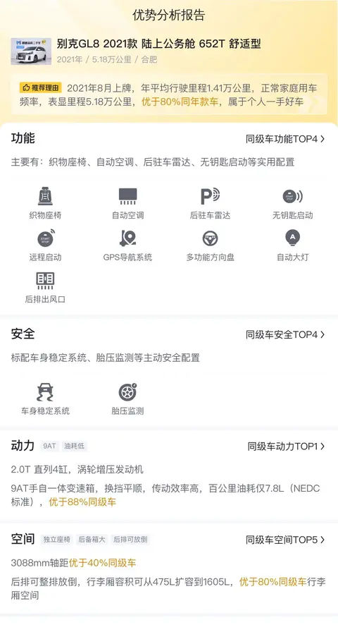 综上所述,这辆二手别克GL8 2021款 陆上公务舱 652T 舒适型在各个方面都表现出了极高的品质和实力。无论是外观设计、内饰配置还是动力性能等方面,都展现出了它作为一款高档商务车的魅力所在。同时,这款车的售价相对较低,用车成本也相对较低,对于想要购买一辆高品质商务车的消费者来说,无疑是一个不错的选择。