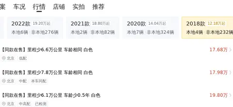 二手车价格受很多综合因素影响,包括使用年限、行驶里程和车辆保养状态等,因此在价格上会有很大的差异。我们为您搜集了同款车型在全国的在售情况,以便您能更好地了解这款车的市场行情。
