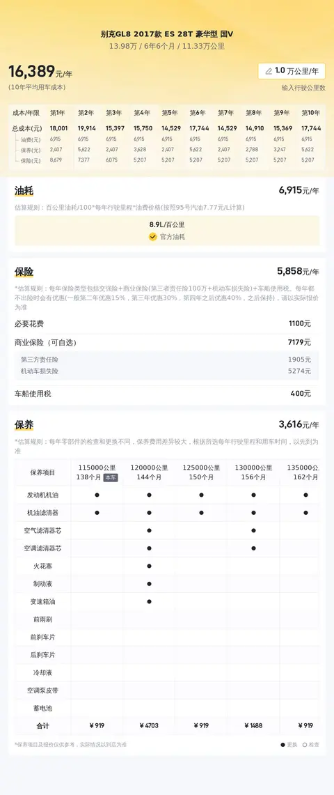 这款车的年均综合用车成本约16148元,具体费用因人而异。保险费用一年大约11518元,保养费用一年大约2888元。