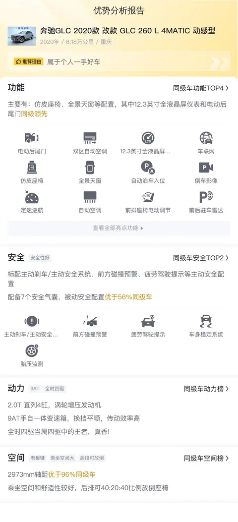 好了,今天的主角——二手奔驰GLC 2020款 改款 GLC 260 L 4MATIC 动感型,已经介绍完毕。它以卓越的性能和豪华的配置,成为了许多消费者的理想之选。在购买前,请务必仔细检查车辆的车况和历史记录,确保自己购买的是一辆高质量的车型。如果您对这款车感兴趣,欢迎交流。最后,希望每位车主都能找到自己心中的理想座驾。