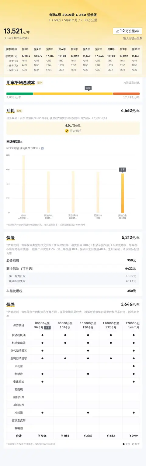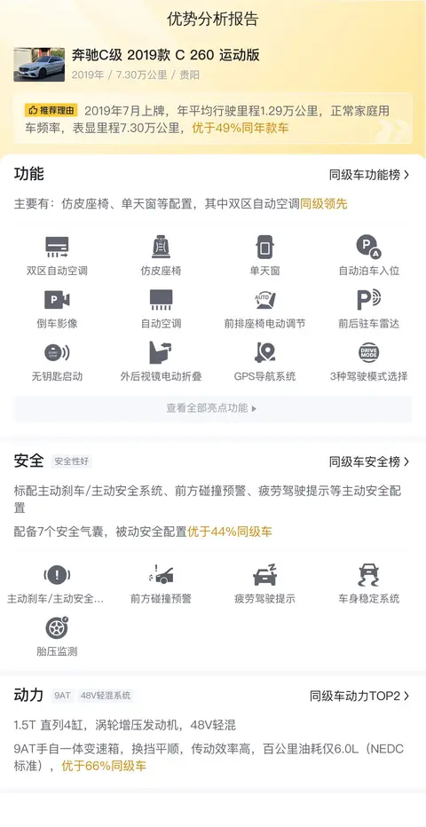 综上所述,奔驰C级2019款C260运动版在设计、性能、安全、舒适等方面都表现出色,是一款集豪华、运动、智能、安全于一身的豪华轿车。当然,每一辆二手车都有其独特的情况,只有综合车况等信息,才能判断价格是否合理。