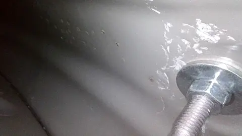 除了外观覆盖件的检测,在买家更为关注的事故检测部分,这辆车也表现一般。在事故检测排查中,有3项需要注意,具体为:左侧底边梁内侧变形、左B柱封边凹陷和后围板变形。至于这些瑕疵的实拍图,我们往下看。
