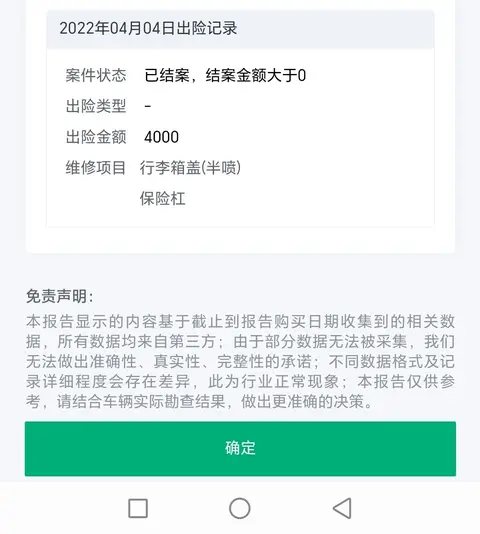 二手车有别于新车,在日常使用中难免会发生一些小意外。比较常见的就是车辆外观覆盖件划伤、剐蹭、划痕、喷漆修复、钣金修复、凹陷、变形等,对于此类小瑕疵,虽然在检测项中会被查出来判定为瑕疵项,但整体并不影响车辆的安全性。总结说一下,如果车辆通过了重大事故、泡水、火烧检测检测,那么说明这辆车的整体车况没有大问题,这个您放心就行。