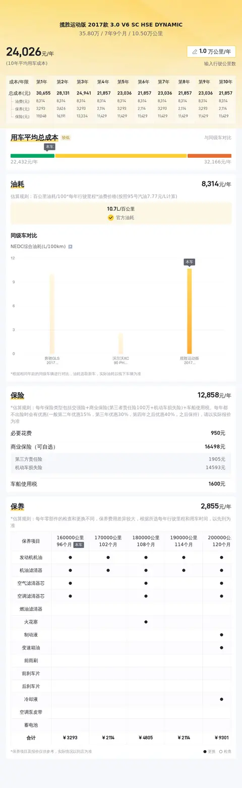 在二手车选购过程中,车况是买家最为关注的因素。我们特别关注了该车的车况细节,以便您能做出更为精准的判断。关于用车成本部分,根据估算,这辆车的年均综合用车成本在2.4万元左右。
