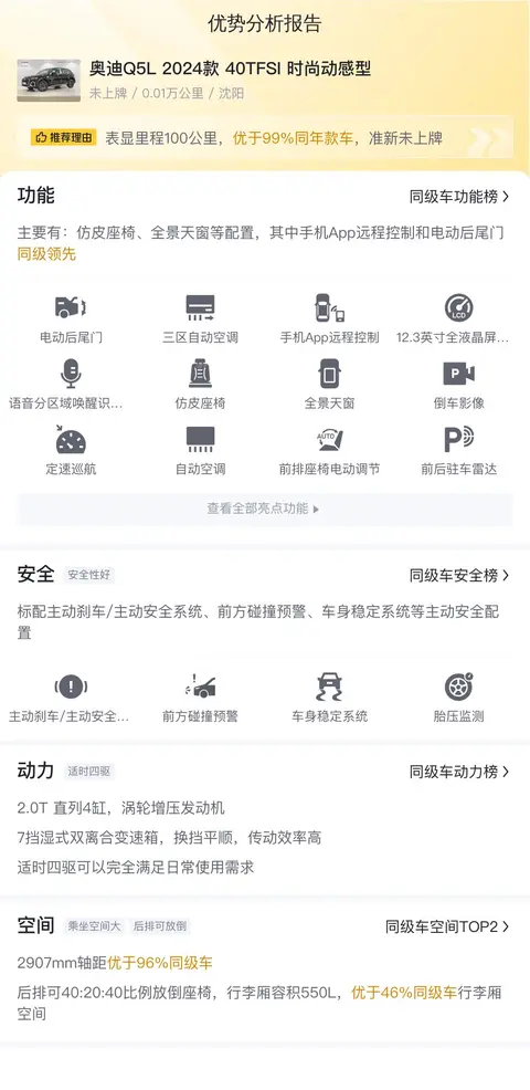 奥迪Q5L在配置、动力、空间等方面均表现出色,与同级别竞品相比,它在内饰设计和科技感上更具优势。然而,在油耗和维修保养费用方面,奥迪Q5L可能相对较高,这是消费者在购买前需要考虑的因素。