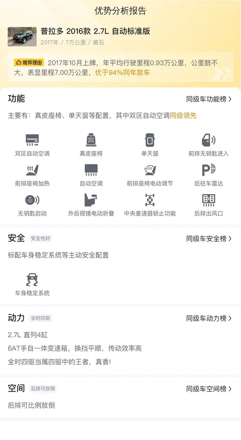 在选择二手车时,车辆的状况往往是买家着重关注的点,为此我们先了解一下这款普拉多2016款2.7L自动标准版的情况。它行驶里程为7万公里,这个数字相较于同类车型来说较短,意味着车辆的磨损程度相对较低。再来看看它的保养记录,虽然有过两次过户的经历。