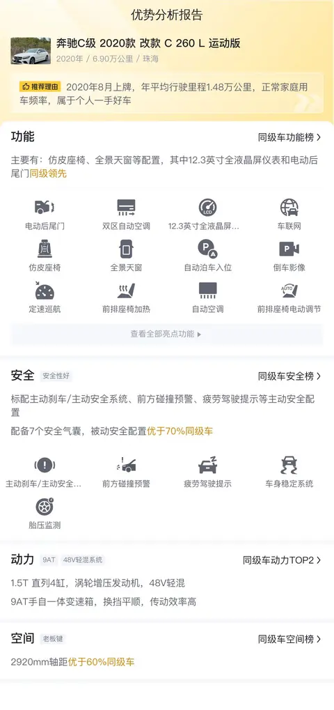 车型级别:奔驰C级 2020款 改款 C 260 L 运动版