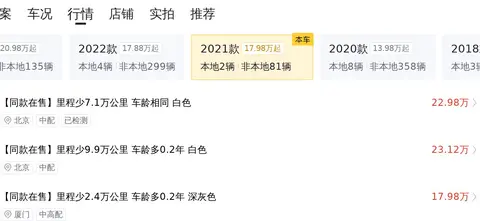 当前市场上,该车型的二手车价格区间在18.98万至23.65万元之间。这里值得一提的是,我们介绍的这辆车的售价为18.98万元,不仅处于较低的价位,而且由于其车况良好、配置丰富,具有较高的性价比和市场竞争力。