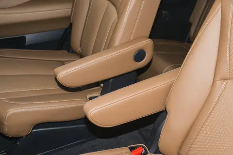 QX60 车长超5.1米,车宽超2米,优于多数MPV比如别克GL8车宽1.87米,提供超大车内空间,全车三排乘坐不拥挤,座椅设计充分考虑了人体工程学,无论是前排还是后排,都能让你找到舒享的驾乘体验,全车三排座椅均搭载零重力技术,前排拥有多项电动调节功能,包括座椅的前后、高低、靠背角度,甚至还有腰部支撑调节,无论你是高个子还是小个子,都能轻松找到贴合自己身体曲线的位置,而且,座椅还具备加热、通风、按摩功能,冬天,温暖的座椅迅速驱散寒意,夏天,清凉的通风功能让你告别闷热潮湿,始终保持干爽舒适;二排支持加热功能,宽敞的腿部空间和头部空间,让成年人可以轻松翘起二郎腿,座椅的坐垫长度适中,对大腿的支撑十分到位,长时间乘坐也不会感到腿部酸痛,第二排过道宽敞,约 200mm,让人自由通过,家里如果有大型爱宠也能轻松躺平,针对多胎家庭,全车设有3组儿童座椅接口,并且后排车门的开口角度较大,方便家长安装和拆卸儿童座椅,配合一键式二排座椅释放功能,即使第二排安装儿童座椅或者有抱娃的大人,也能轻易进入第三排;三排通过剧院式布局提升视野,并支持140°超大倾角调节,彻底告别传统SUV第三排“小板凳”的局促。后排还配备了独立的空调出风口和中央扶手,中央扶手不仅宽大舒适,上面还集成了杯架、储物格等功能,方便后排乘客放置物品。