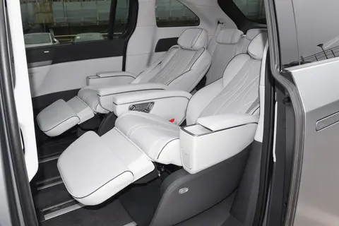 2025款小鹏X9前两排座椅均支持通风、加热、按摩功能,副驾标配“女王座椅”,第三排座椅提供加热功能。同时,该车提供21.4英寸吸顶屏,并将屏幕升级为莱茵认证护眼防蓝光,还提供50瓦手机无线充电、伸缩式杯托、折叠桌板、车载冰箱、流媒体内后视镜等配置,新增车内220伏电源接口,儿童座椅接口增加至4个,车辆V2L外放电功率也提升至6千瓦。