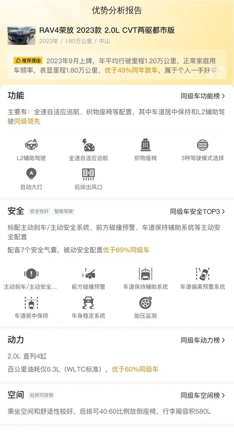 综上所述的新车含税价、用车成本、市场行情、优势分析、同款比价等数据仅供参考。在配置部分,因为二手车非标品,车辆可能会存在配置改装的情况,具体车况信息需要线下结合车辆实际情况进行综合参考。