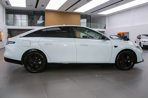 车身侧面,隐藏式门把手与无框车门相得益彰。隐藏式门把手在解锁时自动弹出,仪式感拉满,行车时又能保持车身侧面的平整,降低风阻。无框车门就更不用说了,每次开关门都自带 “高级感”,上下车的时候,旁人的目光总会不自觉被吸引过来。而且,它的车窗玻璃是双层夹胶的,能有效隔绝一部分噪音。