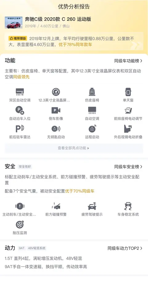 先来看看这辆二手奔驰C级 2020款 C 260 运动版的基础车况信息: