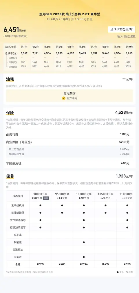 这款车百公里油耗大约在7.9L左右,十年平均用车成本约13613元/年,具体还需结合用车频率、行驶里程等综合考量。