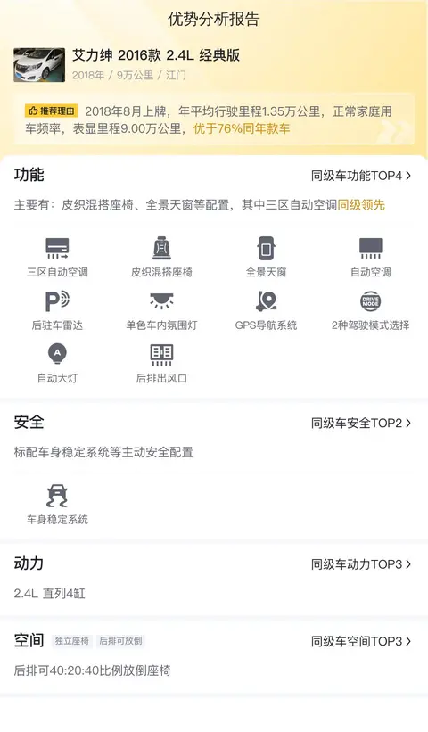 综上所述的新车含税价、用车成本、市场行情、优势分析、同款比价等数据仅供参考。在配置部分,因为二手车非标品,车辆可能会存在配置改装的情况,具体车况信息需要线下结合车辆实际情况进行综合参考。