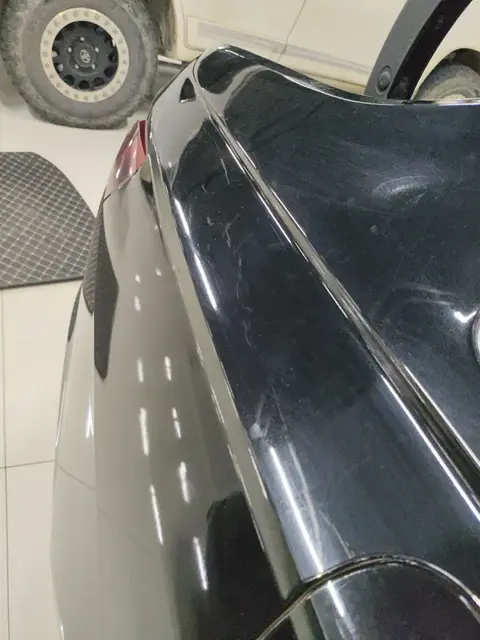 在外观检测部分,这辆车的表现一般,可能是前任车主的驾驶技术一般,或者对车辆使用并不是很爱惜。在外观部分还是存在一些瑕疵的,具体的瑕疵项分别为左后翼子板变形,右后翼子板有划痕。下面我们将为您展示具体的瑕疵项实拍图。