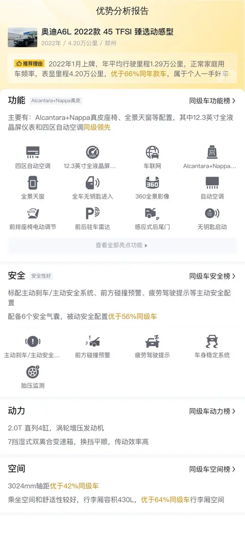 综上所述的新车含税价、用车成本、市场行情、优势分析、同款比价等数据仅供参考。在配置部分,因为二手车非标品,车辆可能会存在配置改装的情况,具体车况信息需要线下结合车辆实际情况进行综合参考。