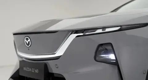 整个侧面,处处充满了运动元素,比如机盖前侧环绕了一组隆起的装饰带,至于是否有其实际用途,还有待官方的进一步消息。尺寸上,马自达的这款EZ-60的车长达到了4.85米,轴距也超过了2.9米,高度则是轿跑SUV里比较主流的1.62米左右,与市面上20-30万价位的主流新能源中型SUV比较相仿。从这里完全能体现出,这款车已经彻底向市场妥协了。而且调整后的侧身,并没有我们想象中的那么具有攻击性,特别是向车尾极限拉长的车身,能够给人一种极致舒缓的感觉。而针对细节,比如新车全系换成了无框车门,隐藏式的门把手以及电子后视镜,这一系列配置的上来,确实增加了我们对于马自达的陌生感。