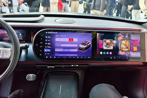 设计层面,新车延续“胶囊元素”灵动基因,车头与车尾通过贯穿式灯组形成视觉呼应,车顶前部集成激光雷达彰显科技实力。运动化升级集中在细节:红色饰条贯穿车身,21英寸10辐BRABUS轮圈搭配红色制动卡钳,营造出蓄势待发的战斗姿态。