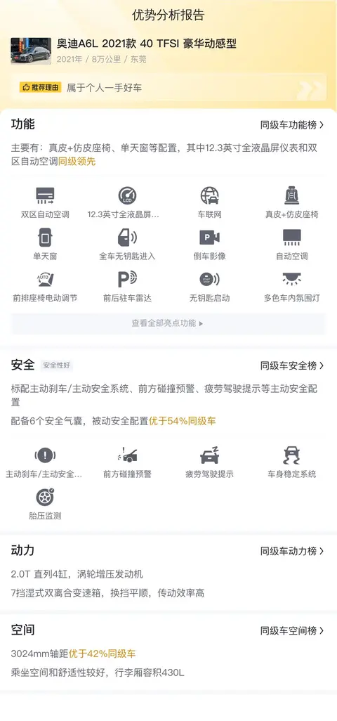 接下来,我们将为您展示这辆奥迪A6L的内在配置和功能表现,以便您更直观地感受车辆的配置情况。