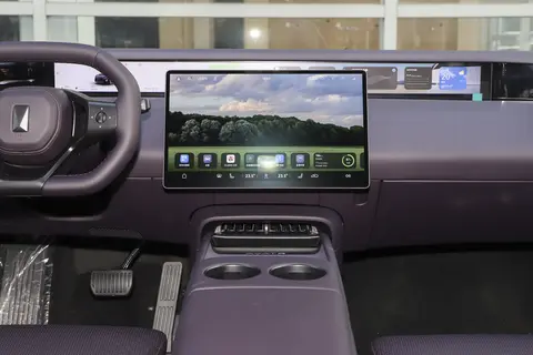 座舱内,大量使用软性材质,包括Nappa真皮、超纤仿麂皮以及桦木真木等,带来极致的触感和视觉享受。前排的双零重力座椅支持电动调节、一键放倒,以及加热、通风和按摩,甚至还有腿托,为副驾乘客提供舒适的支撑。打孔皮质材料的使用则提升了整体的透气性和奢华感。